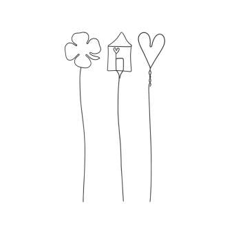 Drahtobjekt Set aus 3 "Haus, Herz, Kleeblatt"