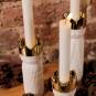 ACHTUNG! Verwenden Sie keine Stabkerzen, die einen Durchmesser von mehr als 21 mm haben, eine verlängerte Brenndauer (mehr als 4 Std.) aufweisen oder Duftstoffe enthalten, derartige Stabkerzen sind für diesen Einsatz ungeeignet und sollten unter keinen Umständen verwendet werden. Bitte beachten Sie zusätzlich die Warnhinweise der Kerzenhersteller. Vor Zugluft schützen. Dieses Produkt enthält brennbares Material. Achten Sie vor jeder Verwendung darauf, dass keine etwaigen Wachsrückstände am Artikel verbleiben. Gegen Umfallen und Herunterfallen sichern. Auf eine sichere, nicht brennbare Unterlage stellen. Lassen Sie Kinder nie unbeaufsichtigt mit brennenden Kerzen oder Feuer. Nicht abdecken. Nur auf feuerfesten Untergrund stellen. Lassen Sie eine brennende Kerze nie ohne Aufsicht.