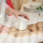 - Anwendung: Schmieren Sie die Butter (ca. 125g) in das Oberteil der Butterglocke. Stülpen Sie dieses anschließend in das mit Wasser (ca. 75ml) gefüllte Unterteil. So entsteht eine luftdichte Barriere, die die Butter hygienisch frisch hält. Es wird empfohlen, das Wasser alle zwei Tage zu wechseln, sodass die Butter bis zu zwei Wochen haltbar bleibt (das MHD ist zu beachten).