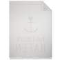 Die Decke ist in einem Polybag verpackt und verfügt über einen Hangtag, der mit einem Nylonfaden befestigt ist. Entfernen Sie den Polybag vorsichtig, um die Decke nicht zu beschädigen. Schneiden oder lösen Sie den Nylonfaden vorsichtig ab, um den Hangtag zu entfernen, ohne die Fasern der Decke zu beschädigen.