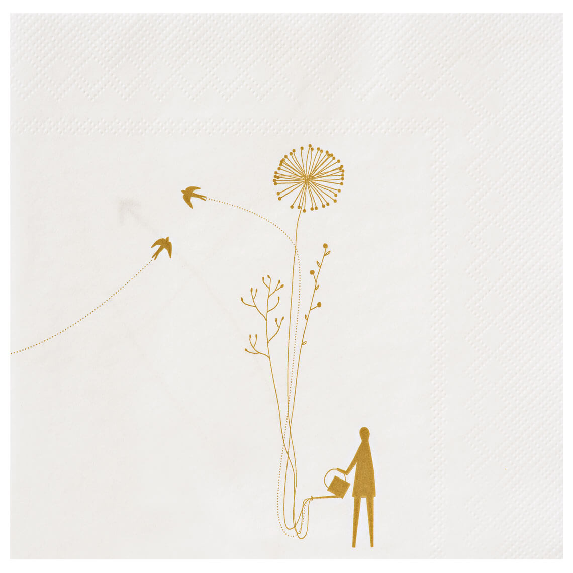 - Die Servietten sind farblich bedruckt. Achten Sie darauf, dass die Servietten nicht in Kontakt mit Feuchtigkeit kommen, da es zu Farbabrieb kommen kann. Vermeiden Sie den Kontakt mit empfindlichen Oberflächen, um Fleckenbildung durch den Farbabrieb zu verhindern.